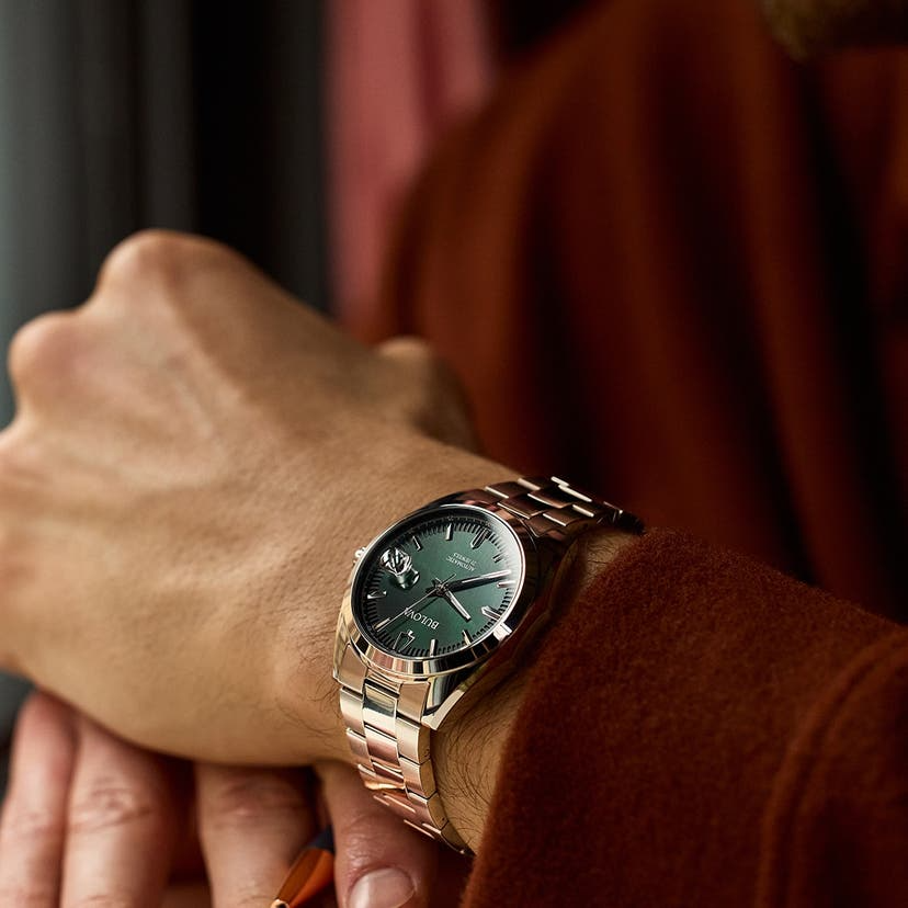 Bulova offers the Surveyor on both stainless steel bracelets and leather straps. The bracelets use polished center links for a slightly dressier aesthetic, while the leather variants lean into a vintage-inspired vibe. Both options keep the watch wearable in nearly any setting.