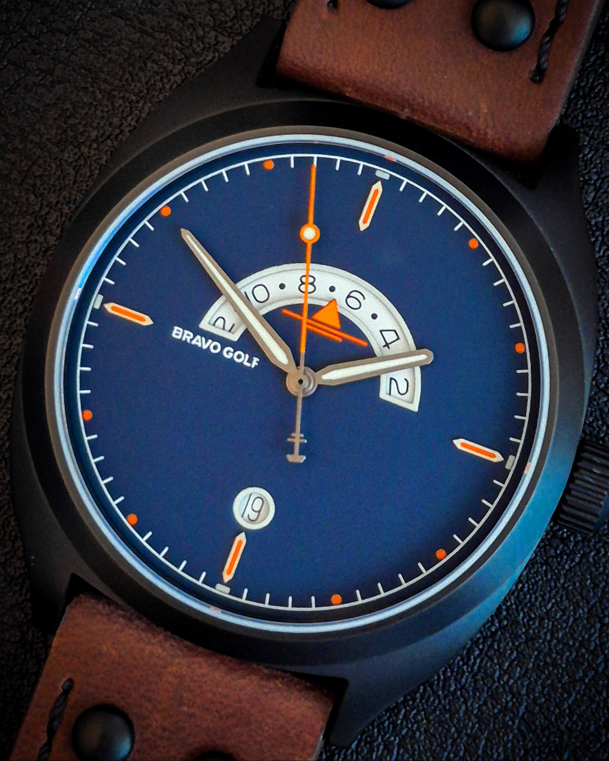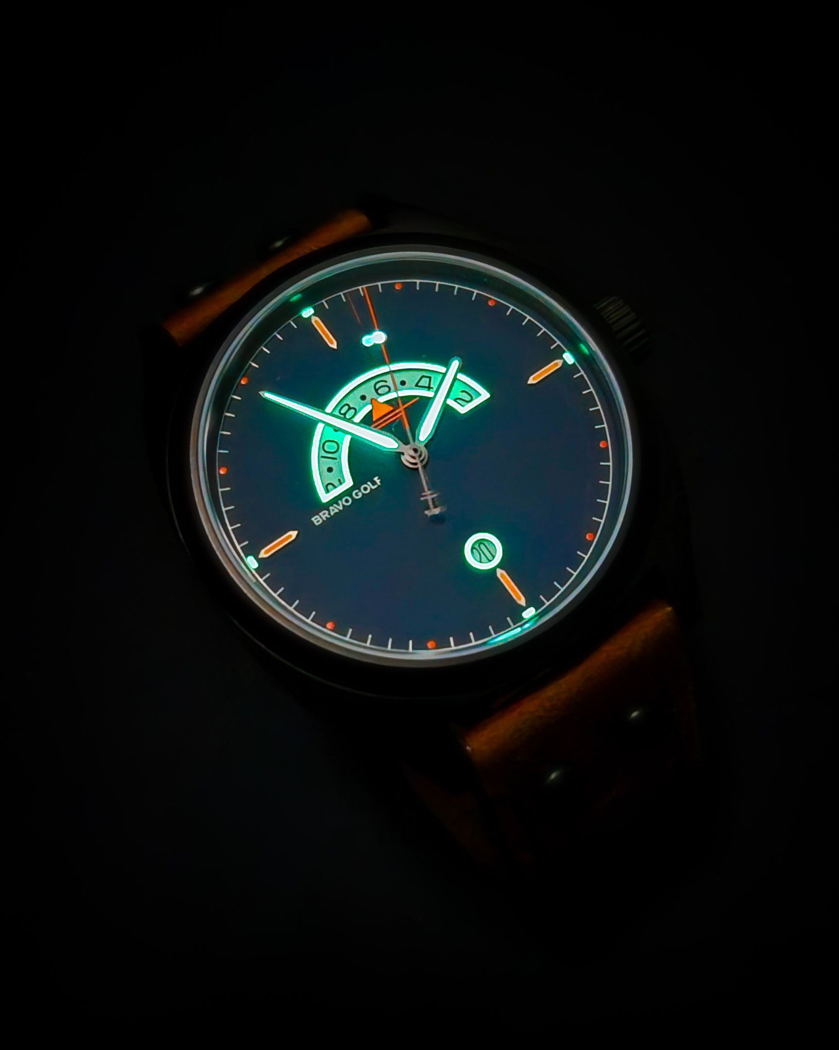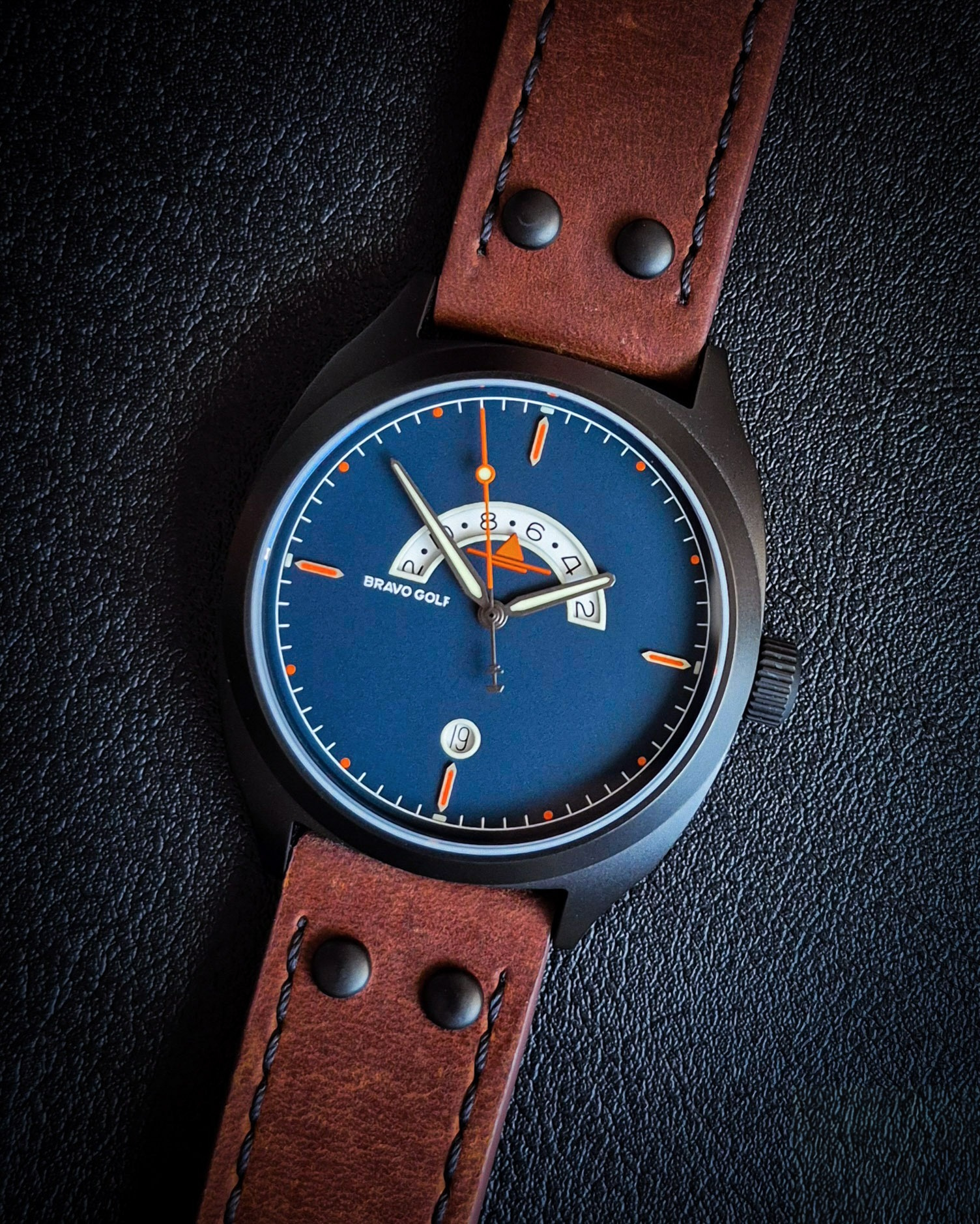 Baltany Dirty Dozen vintage watch close-up with visible dial and strap, placed on a rustic wooden background.